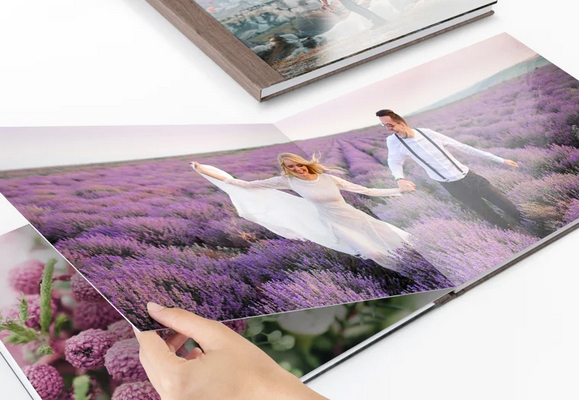 Livre photos haut de gamme à 275,00 euros (pour 10 pages... plus de page, demandez un devis) ; cet album est fabriqué à la main avec des matériaux de haute qualité, dont les pages sont montées sur un support cartonné (environ 1,1 mm) avec une épaisseur de papier importante. • Je ferais moi-même la sélection des plus belles photos de votre mariage. • Dimensions exactes (fermé) : 40 x 30 cm • Couverture en Verre Acrylique. • Reliure à plat -> COUVERTURE : Verre acrylique de 4 mm d’épaisseur + simili-cuir. -> SURFACE DE LA COUVERTURE : aspect simili-cuir blanc. -> SURFACE DES PAGES INTERIEURES : papier photo mat Fujifilm Crystal Archi Album Mat. Pas de traces de doigts, 368 g/m2 (dimensions et nombre de pages non exhaustif).